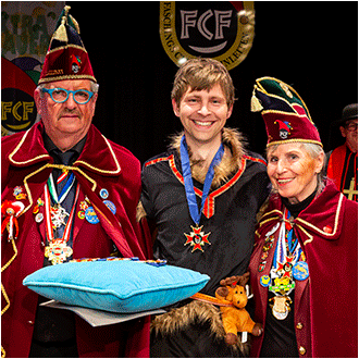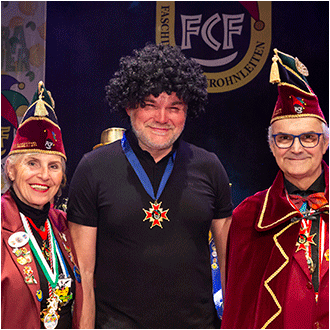 | Als Dank für ihren Einsatz und zur Erinnerung an die schönen Jahre überreichen der neue Präsident und die neue Vizepräsidentin ihren Vorgängern jeweils ein FCF-Fotoalbum. Louis Kraxner wird zudem zum Ehrenpräsidenten des Faschingsclub Frohnleiten ernannt. |