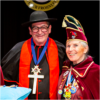| der neben dem Orden auch den Titel Ehrensenator verliehen bekommt mit Umhang und Kappe - also das "Faschingsornat" |