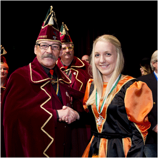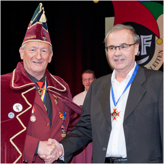| der neben dem Orden auch den Titel Ehrensenator verliehen bekommt mit Umhang und Kappe - also das "Faschingsornat" |