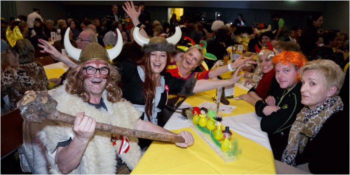 | schnell bei den Helfern in der Garderobe das Faschingskostüm freilegen |