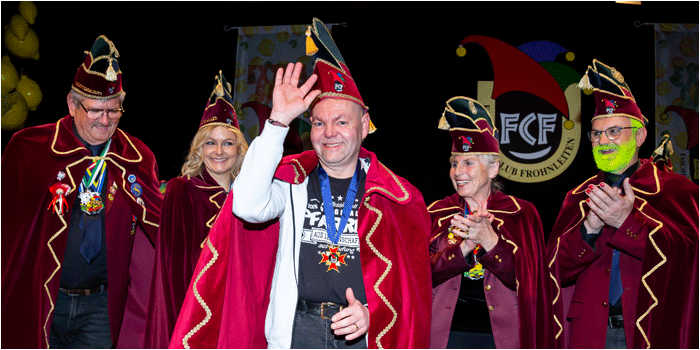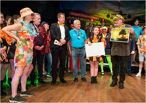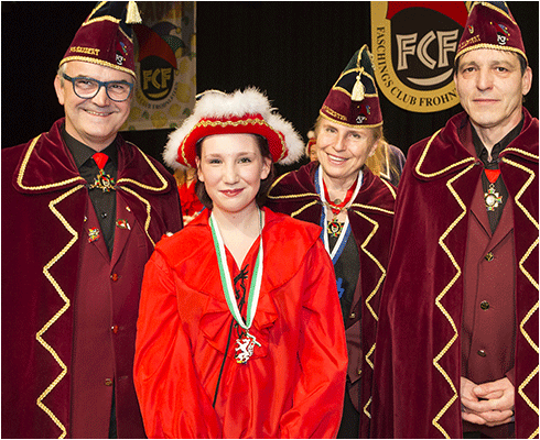 | Als Dank für ihren Einsatz und zur Erinnerung an die schönen Jahre überreichen der neue Präsident und die neue Vizepräsidentin ihren Vorgängern jeweils ein FCF-Fotoalbum. Louis Kraxner wird zudem zum Ehrenpräsidenten des Faschingsclub Frohnleiten ernannt. |