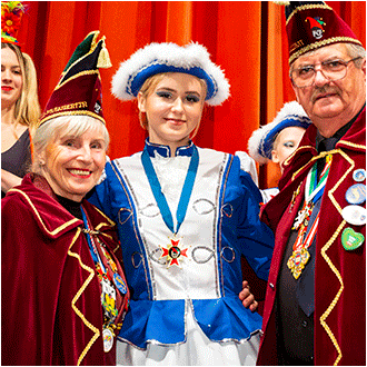 | Die FCF-GARDE marschiert in einer neuen Uniform ein. Herzlichen Dank an den Landtagsabgeordneten Wolfgang Kasic für seine Unterstützung und an Katharina Schabernack, die die Kostüme genäht hat !! |