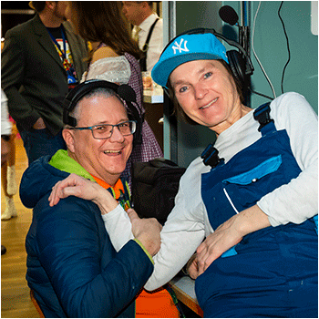 | Cilli LEITNER und Monika Gräsl und dürfen am Ende natürlich auch ein bissl Bühnenluft schnuppern |