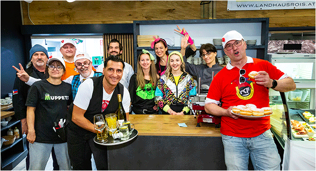 | die Versorgung der Gäste im Saal übernimmt heuer das Team vom Landhaus Rois |